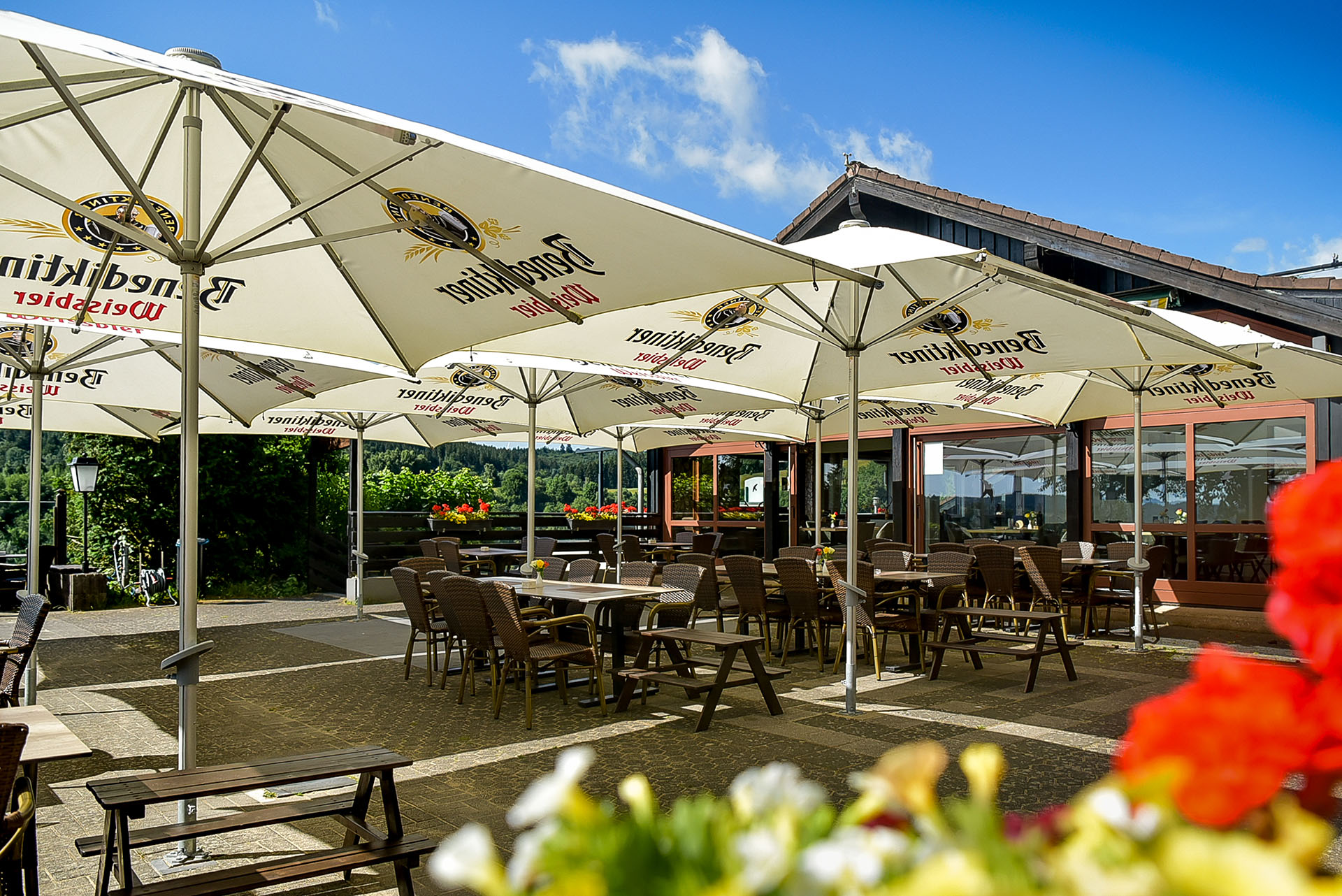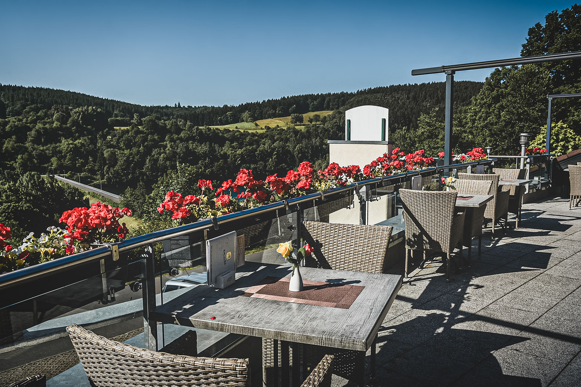 In der warmen Jahreszeit laden unsere großzügigen Sonnenterrassen mit herrlichem Ausblick zum Feiern unter freiem Himmel ein.